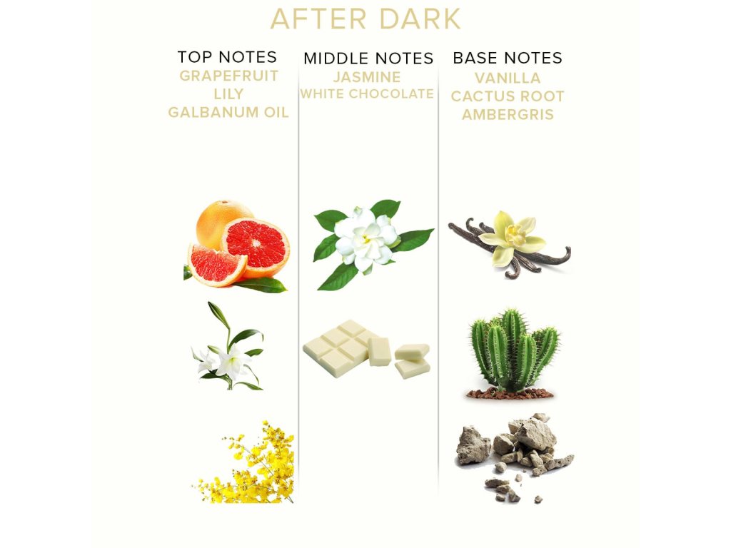 Obsahuje feromony nejvyšší kvality, které přitahují muže. Vůně obsahuje smyslnou směs hřejivého jasmínu, lilie a krémově sladké bílé čokolády. Podtóny čerstvého grapefruitu a vanilky ho přivádějí k šílenství. Speciálně vyvinutý pro zvláštní příležitosti.