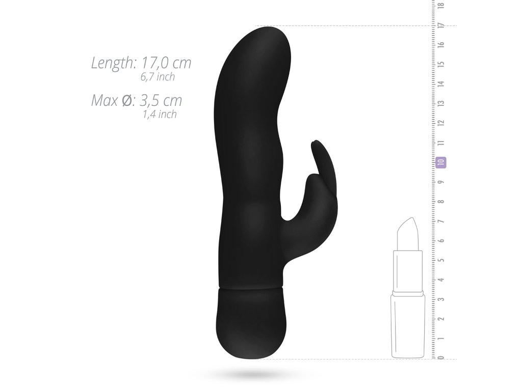Černý vibrátor dodává klasickému modelu králičího vibrátoru moderní nádech díky svému plně silikonovému povrchu.